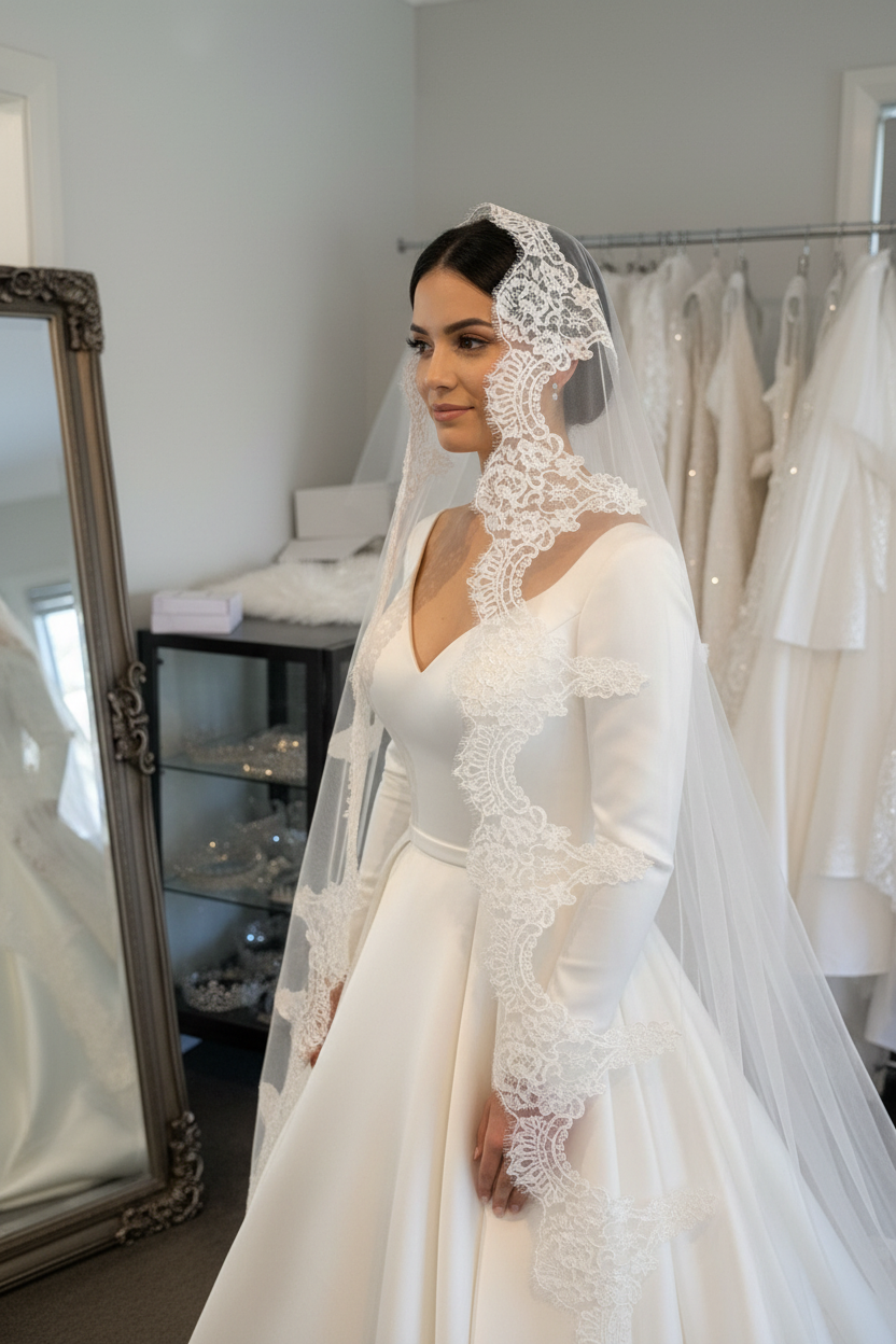 Overall, a mantilla lace veil is a timeless and beautiful choice for any bride who wants to feel elegant and feminine on her wedding day.