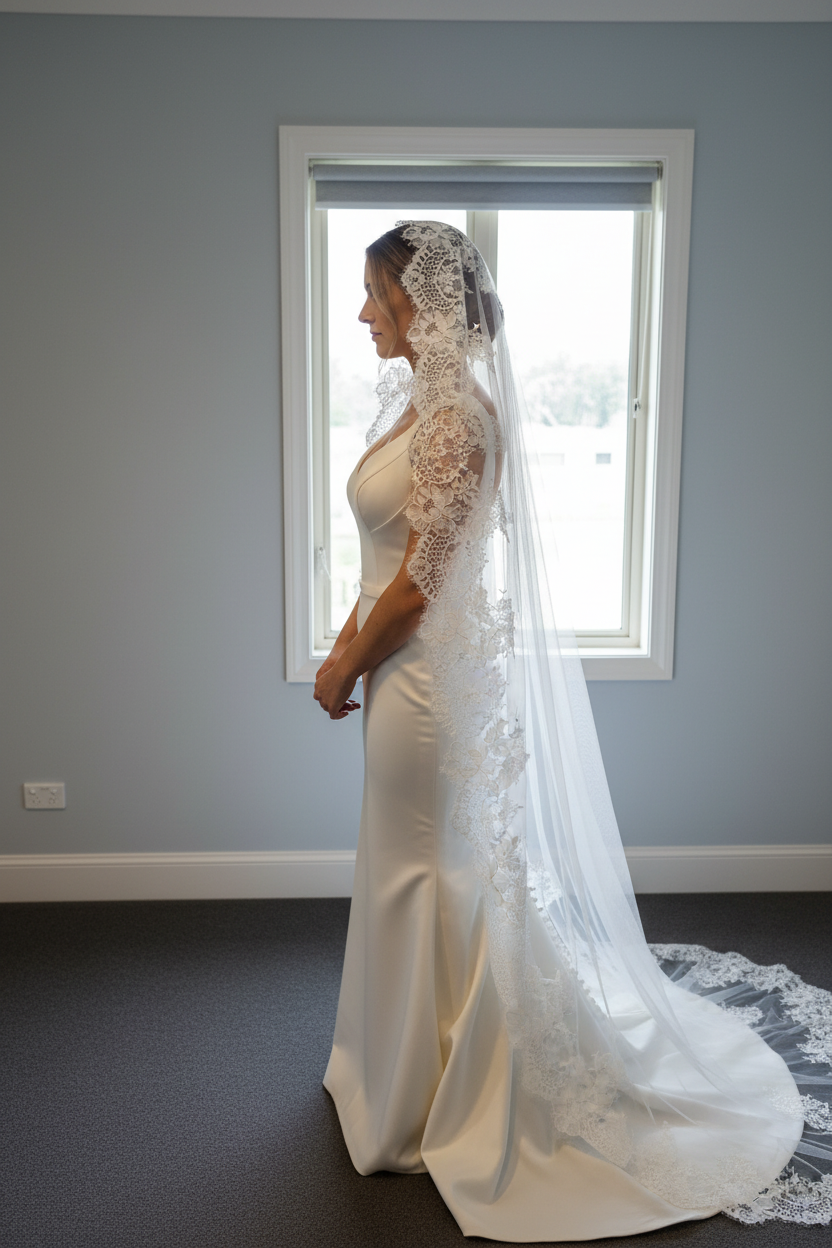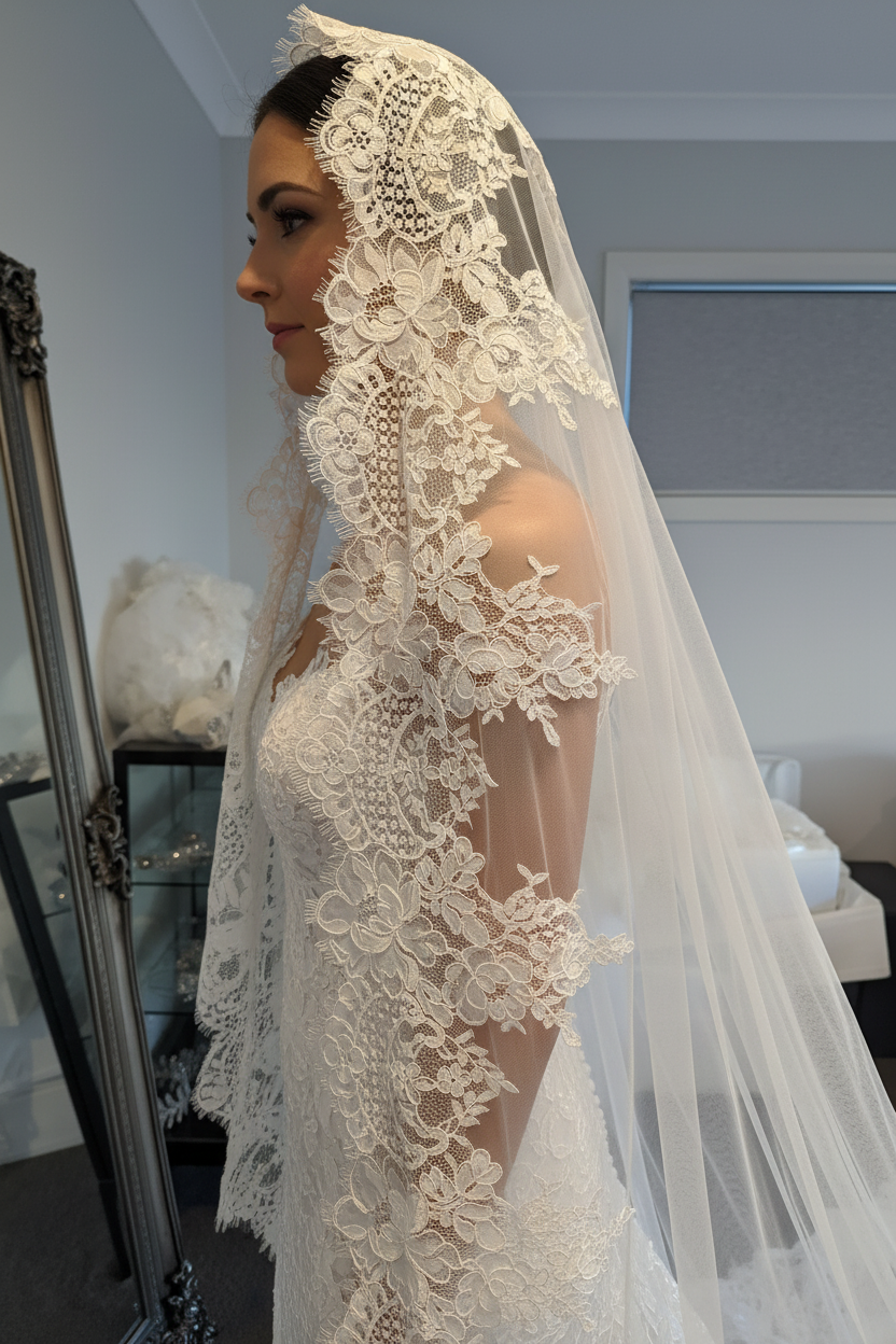 Overall, a mantilla lace veil is a timeless and beautiful choice for any bride who wants to feel elegant and feminine on her wedding day.