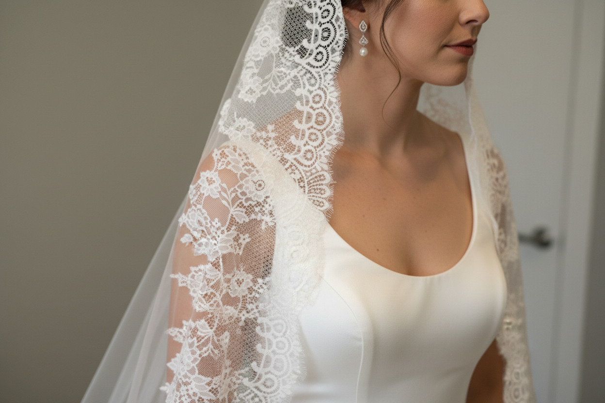 Overall, a mantilla lace veil is a timeless and beautiful choice for any bride who wants to feel elegant and feminine on her wedding day.